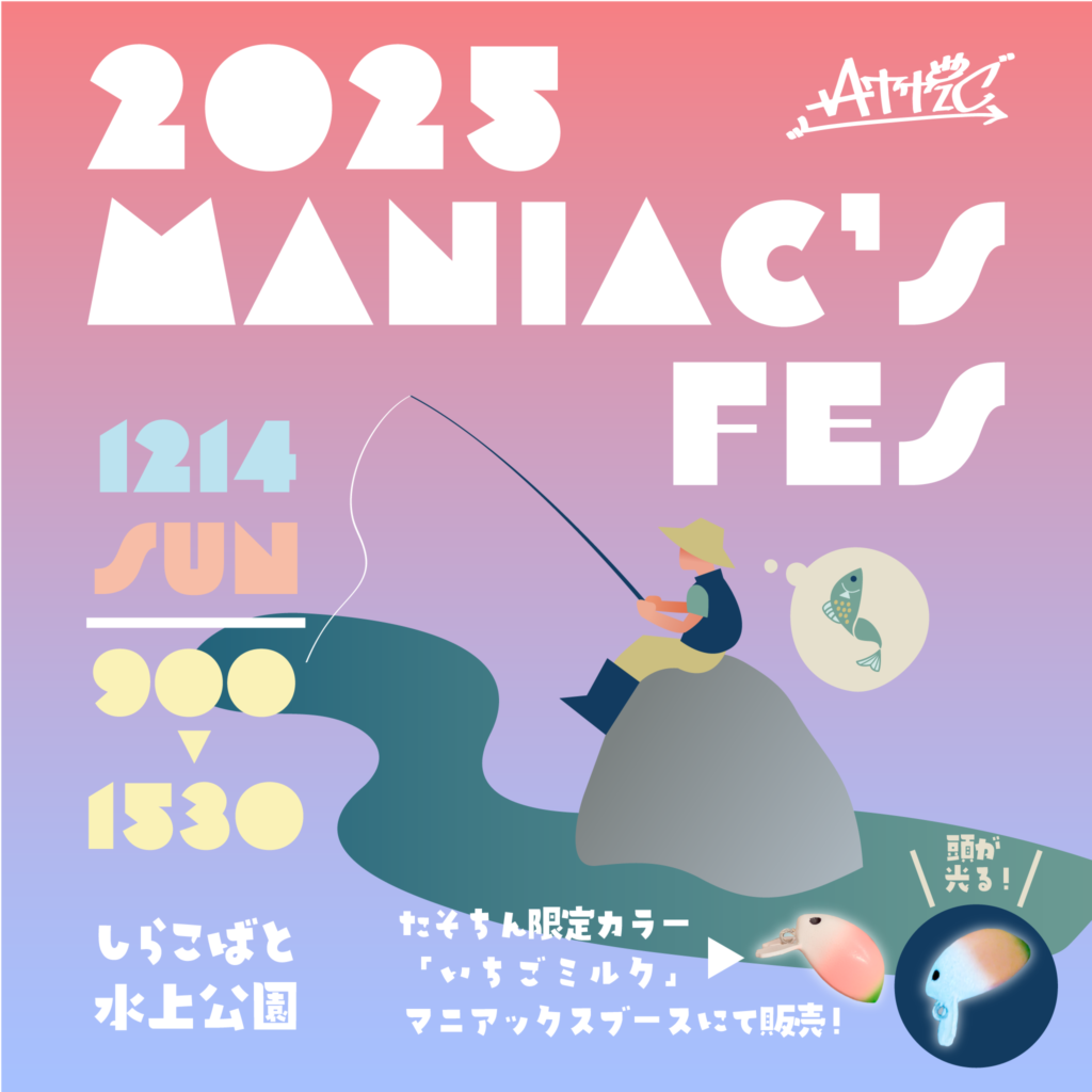 12月14日(日)に埼玉県しらこばと水上公園で開催されるマニアックス様のイベント「マニアックスフェス2025」に参加致します!ATTICフィールドスタッフが、イベント限定カラールアーなどを用意してお待ちしております!